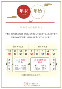 年末年始は、下記の通り料金を変更させていただきます。